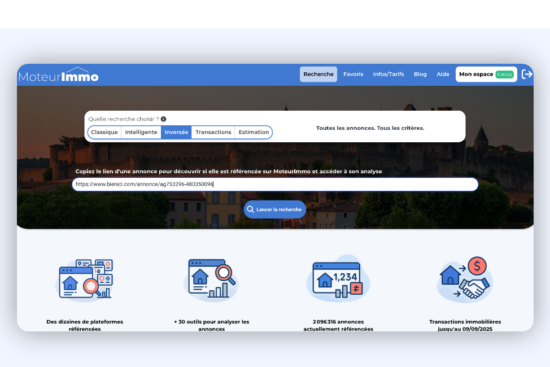Vous avez repéré une annonce intéressante sur un portail immobilier classique comme Le Bon Coin, SeLoger, PAP ou autre ? Grâce à la fonctionnalité Recherche inversée de MoteurImmo, vous pouvez accéder…